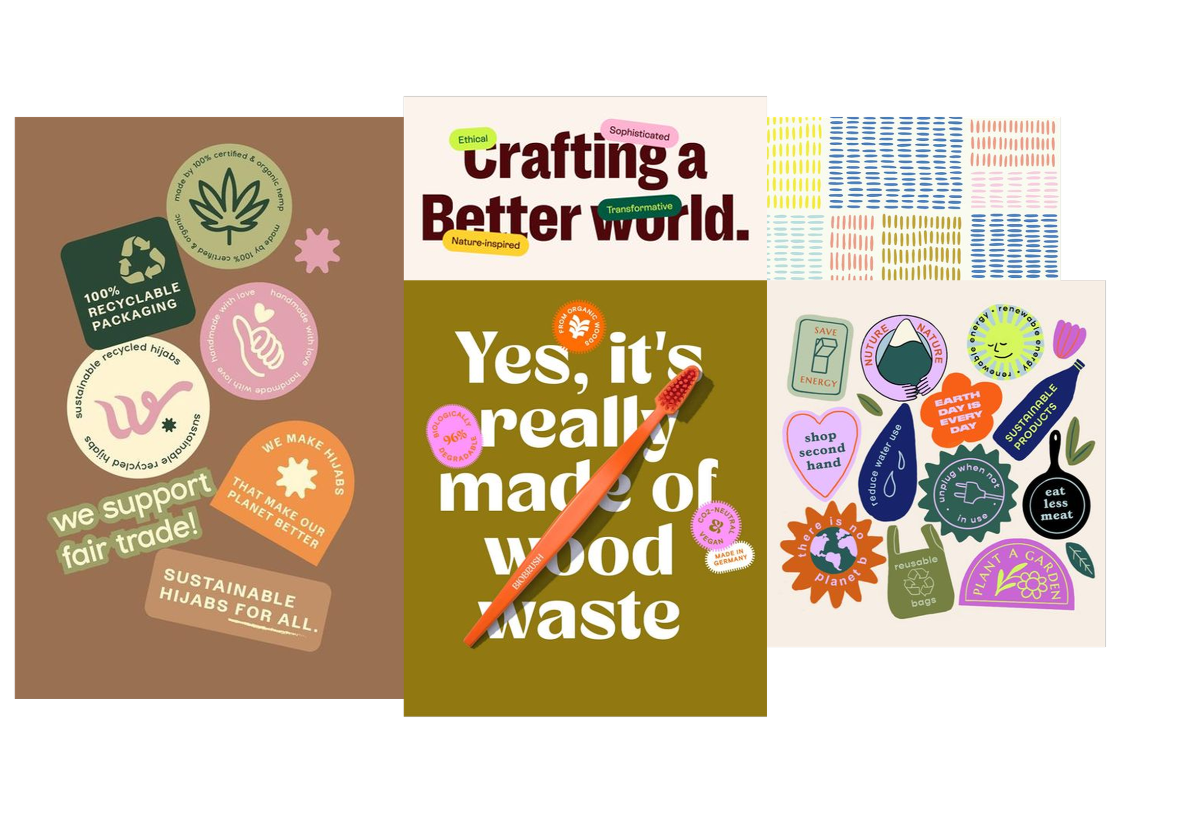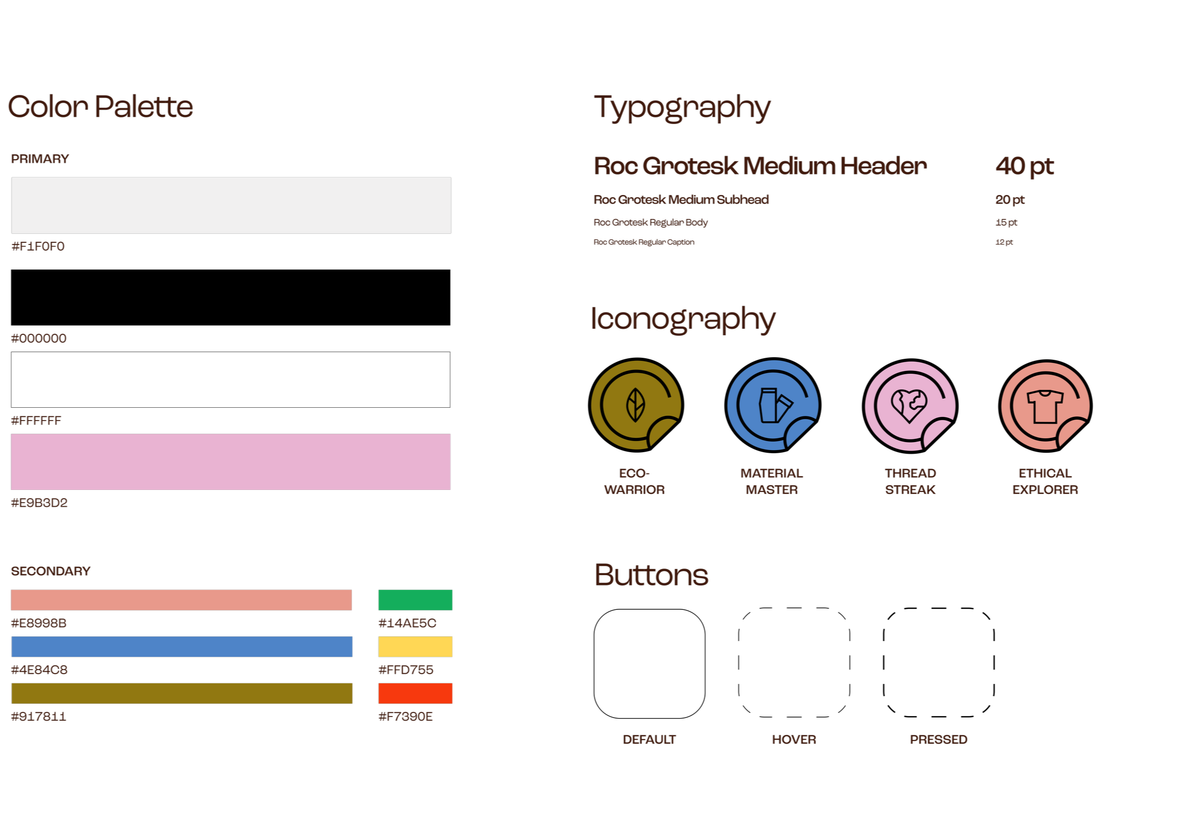 Introducing small textural details like thread to create a visual tie to fashion. Utilizing simplistic sans-serif typeface to allow modern earth-toned palette to pop with bright, disrupting accents.