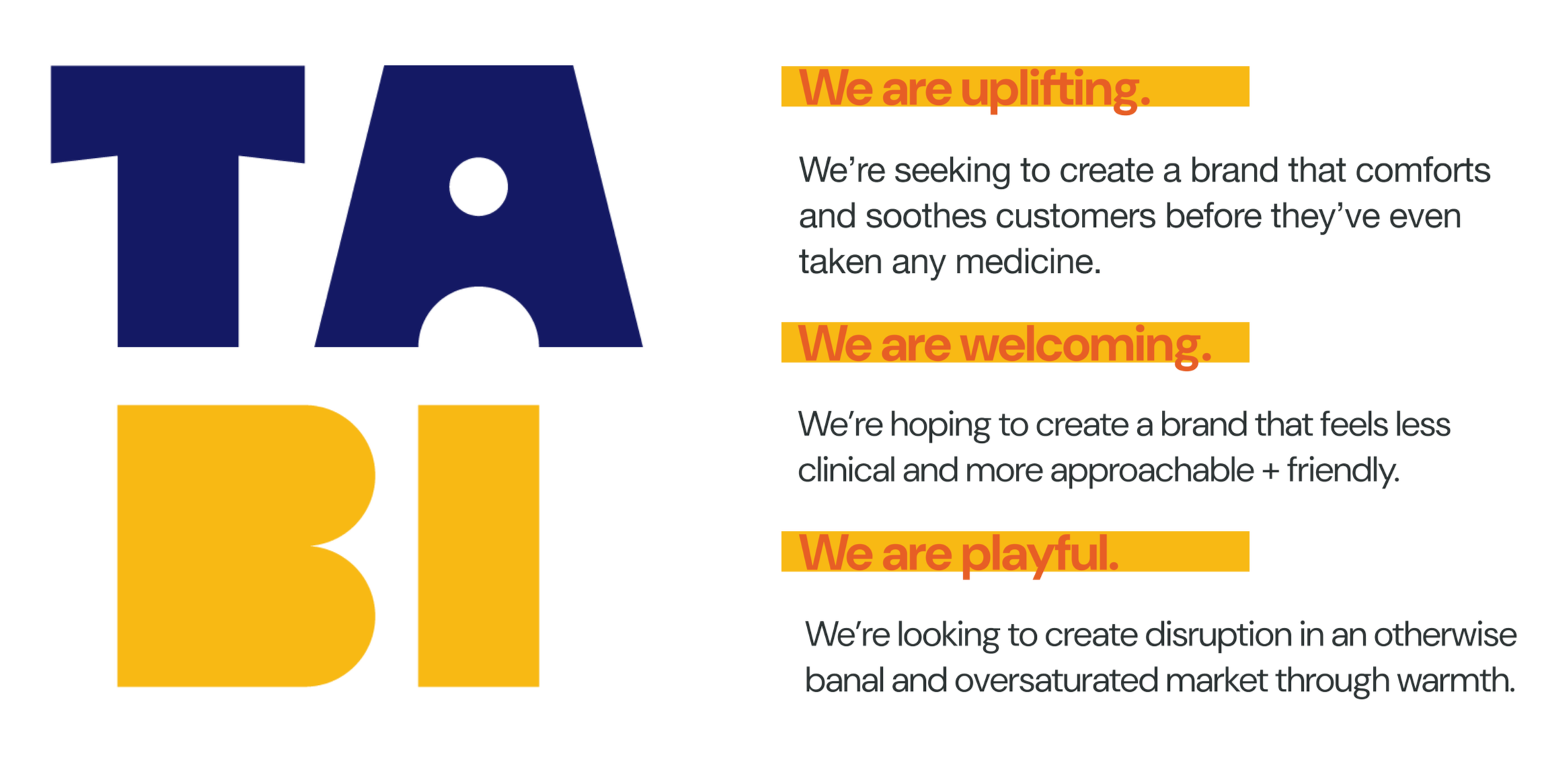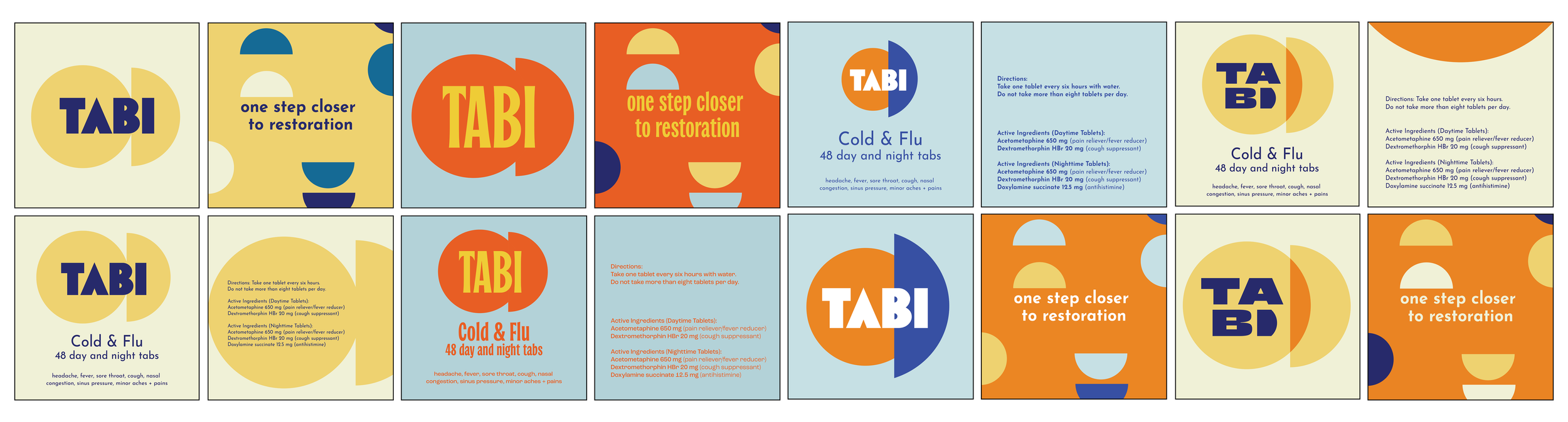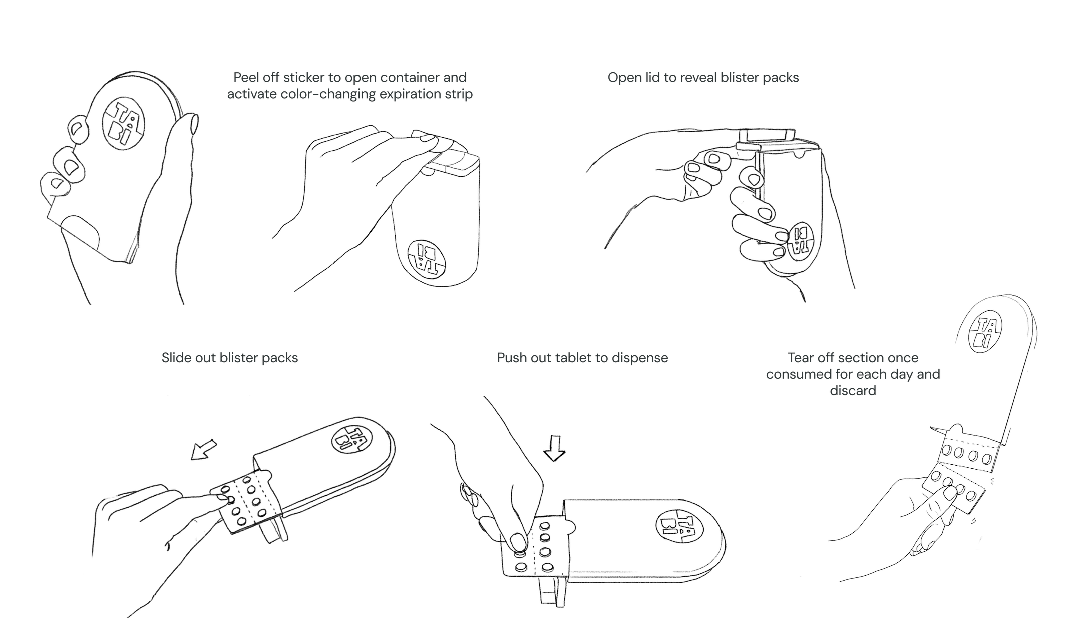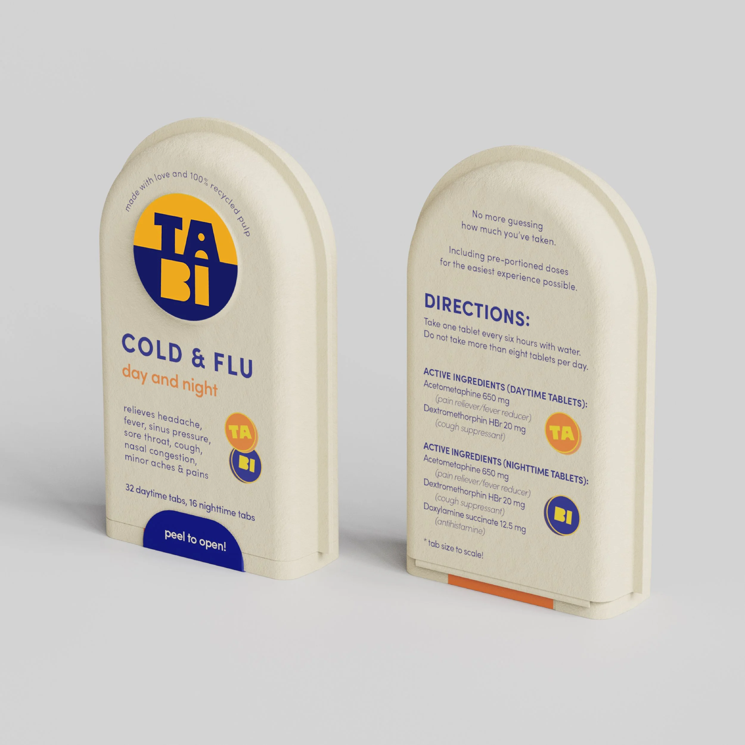 Tabi’s distinct form shape and disrupting packaging design, along with color-coordinated blister packs creates a unique user experience. The friendly and welcoming messaging and instruction language is unlike anything in the category.